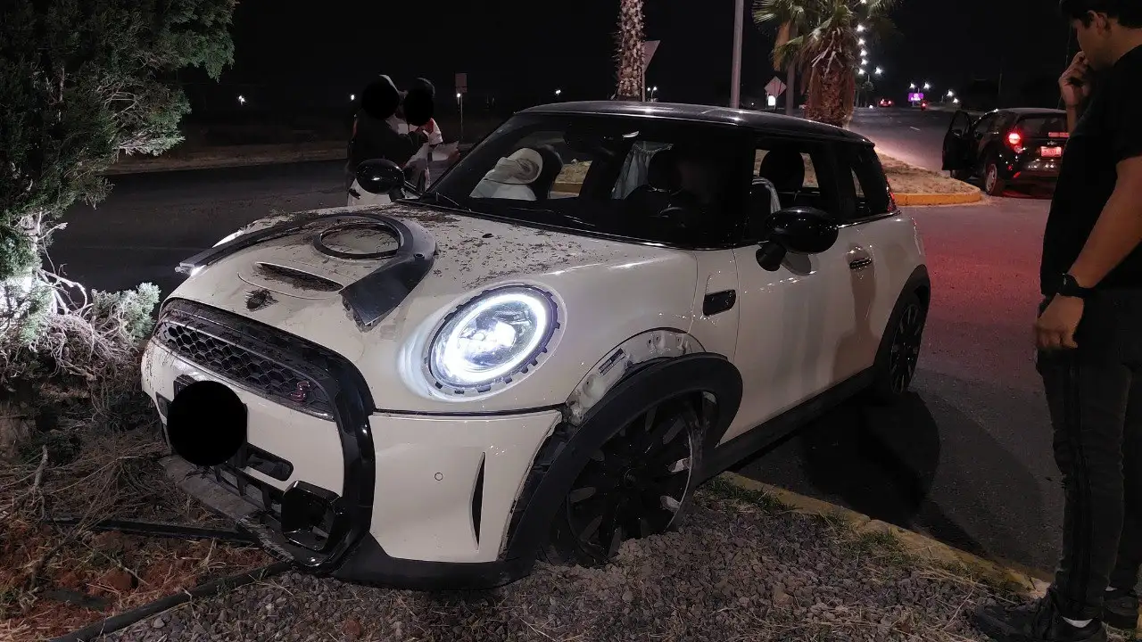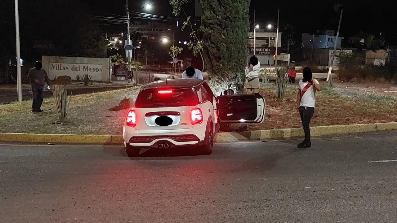 Un aparatoso accidente ocurrió en el bulevar Villas del Mesón, cuando una conductora de origen extranjero perdió el control de su Mini Cooper. Después de impactarse contra la acera, el vehículo atravesó la glorieta y terminó estrellándose contra un árbol Ciprés.