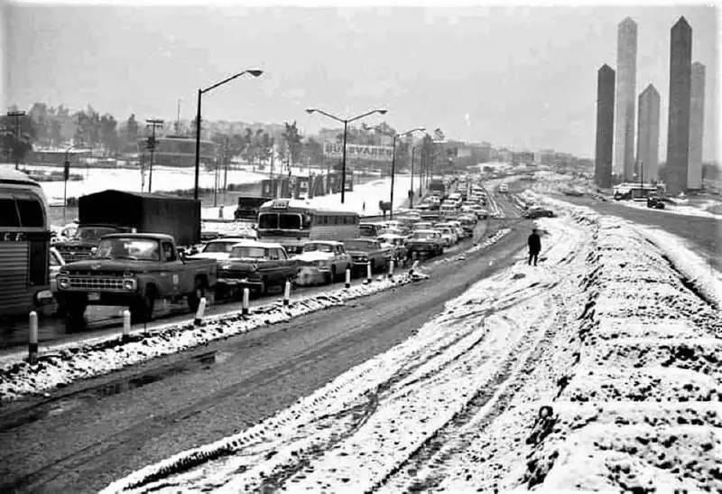 El 11 de enero de 1967, la Ciudad de México y Naucalpan amanecieron cubiertas de blanco tras una inusual y fuerte nevada que dejó un paisaje gélido y memorable. Este fenómeno sorprendió a los capitalinos, quienes presenciaron cómo las calles y edificios quedaron pintados de nieve, algo poco común en la región.
