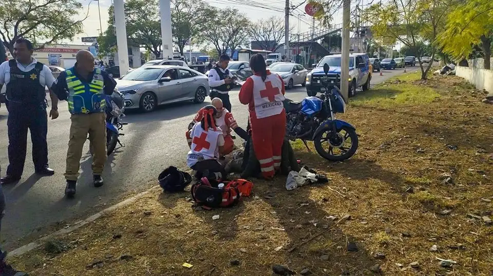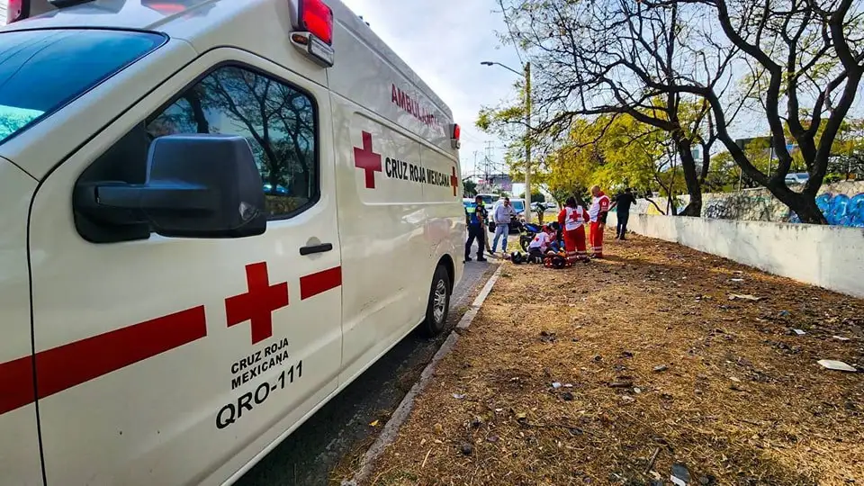 Un incidente vial se registró este miércoles a las 16:50 horas en Prolongación Bernardo Quintana, donde dos motociclistas colisionaron con un taxi, generando tráfico y movilizando a los servicios de emergencia en la zona.