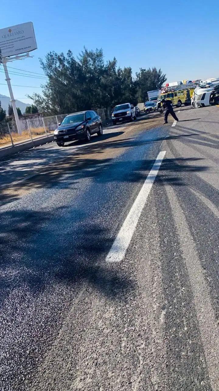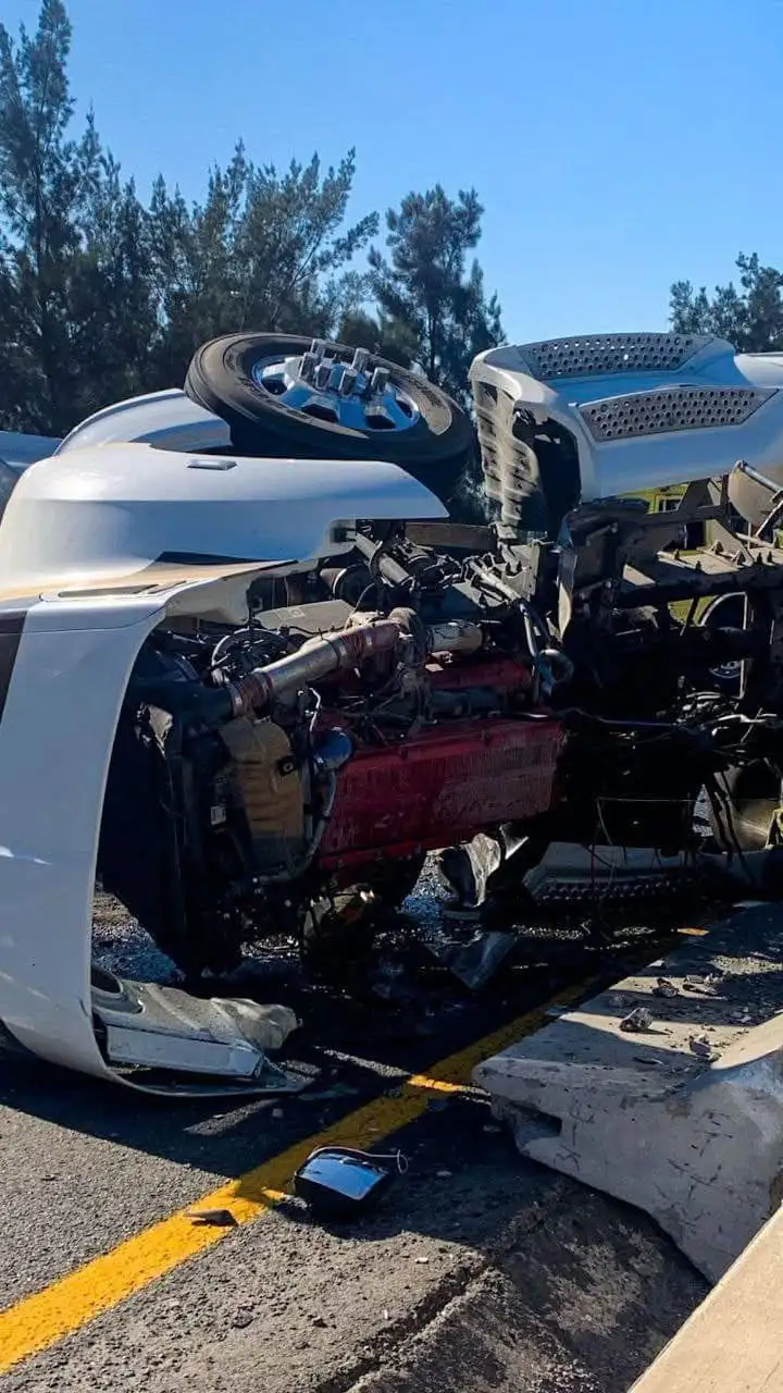 El accidente ocurrió en los carriles con dirección a San Luis Potosí. Según relató la conductora del tráiler, de 33 años, el percance se originó cuando un camión de quinta rueda le cerró el paso al descender el libramiento Noreste, lo que la obligó a maniobrar hacia su derecha para evitar una colisión. La unidad chocó contra los muros divisorios de concreto de la vialidad, lo que provocó que volcara y que parte de la carga quedara esparcida sobre el asfalto.