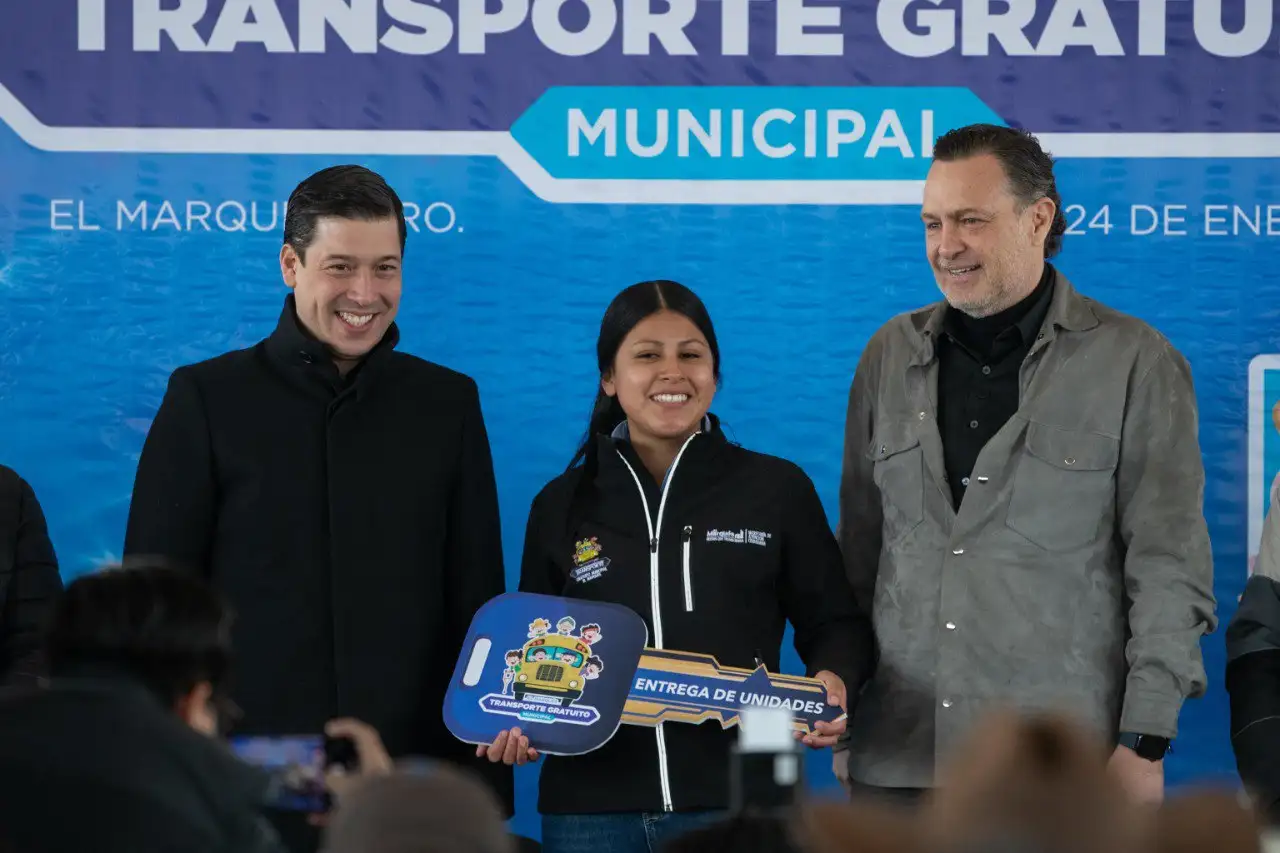 En un acto que reafirma el compromiso con la educación y el bienestar estudiantil, el gobernador de Querétaro, Mauricio Kuri González, y el presidente municipal de El Marqués, Rodrigo Monsalvo Castelán, entregaron 10 nuevos camiones para el programa de Transporte Gratuito Municipal. Este esfuerzo, que representa una inversión de aproximadamente 25 millones de pesos, busca fortalecer un servicio clave que actualmente beneficia a más de ocho mil 500 estudiantes.
