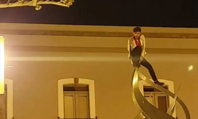 Un hombre de aproximadamente 37 años protagonizó un tenso momento en la Plaza Constitución, en el centro de Querétaro, al escalar un monumento y alterar el orden público la noche de este miércoles.