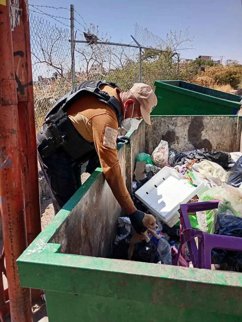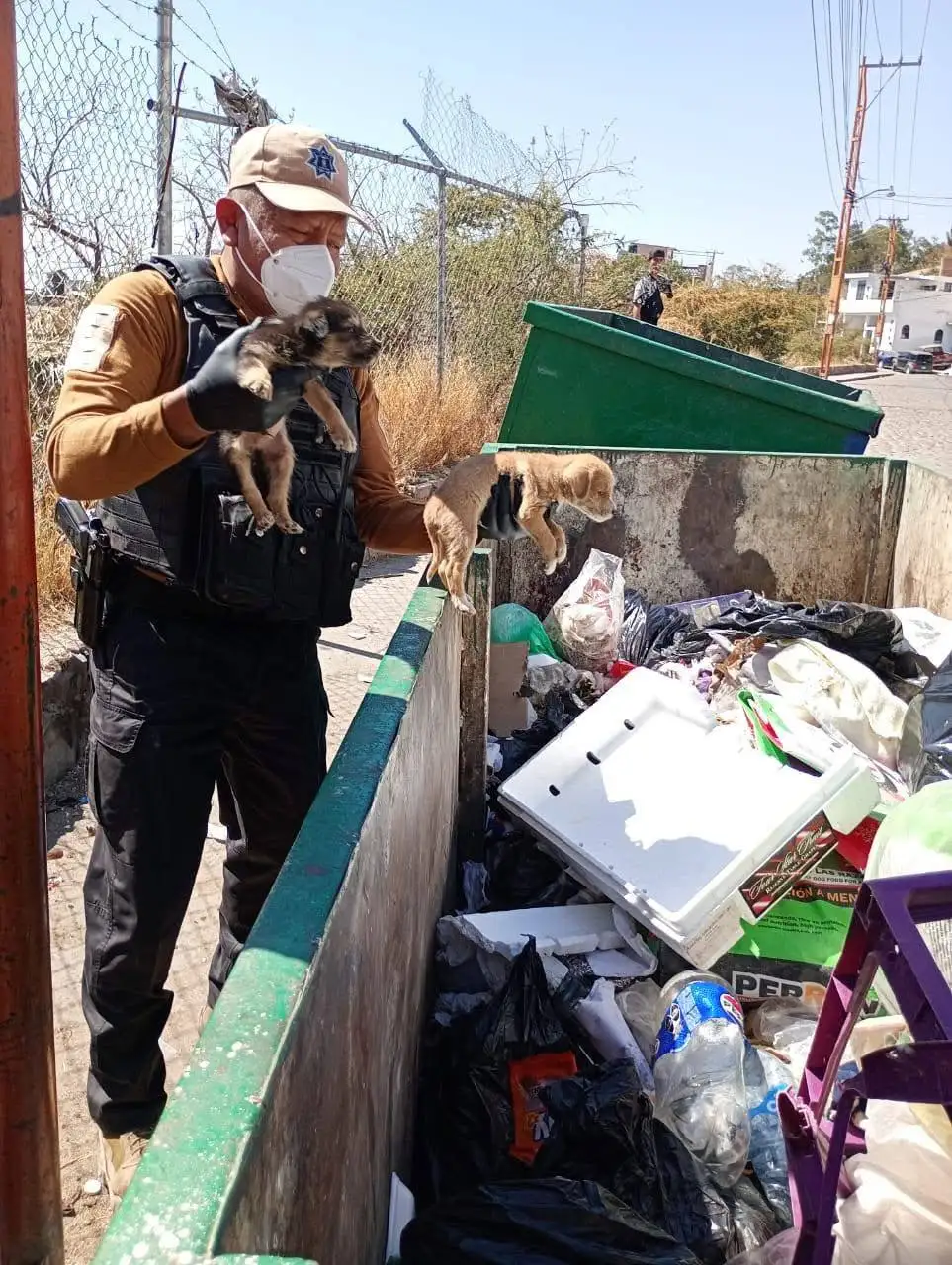 Elementos de la Policía Ambiental de Guanajuato Capital lograron el rescate de cuatro cachorros abandonados en un contenedor de basura, ubicado en la subida al Panteón Nuevo.