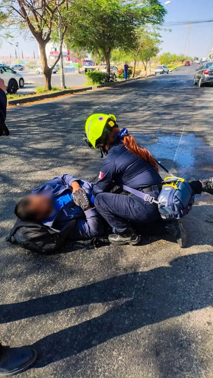 🛢️ Esta mañana, a las 10:40 horas, un camión de transporte público provocó un derrame de diésel en la Av. de la Luz, causando caos en la vialidad. El combustible esparcido hizo que un motociclista perdiera el control y derrapara, resultando lesionado. 🚑 Bomberos Querétaro y el Centro Regulador de Urgencias Médicas actuaron de inmediato para atender al afectado y controlar el derrame. Las autoridades piden a los conductores evitar la zona y seguir las indicaciones para prevenir más incidentes. ⚠️