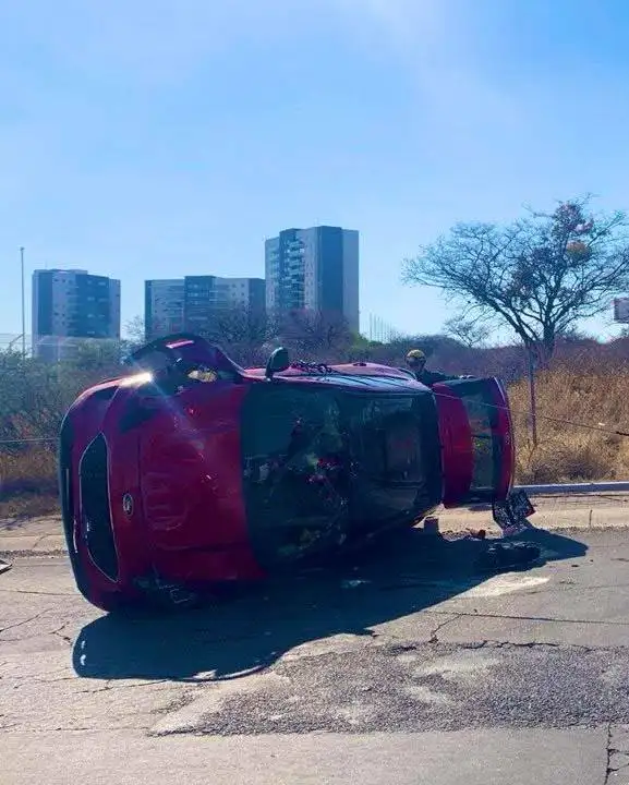 Un fuerte accidente vehicular se registró en la zona de El Refugio, donde un automóvil volcó tras impactar contra una luminaria.