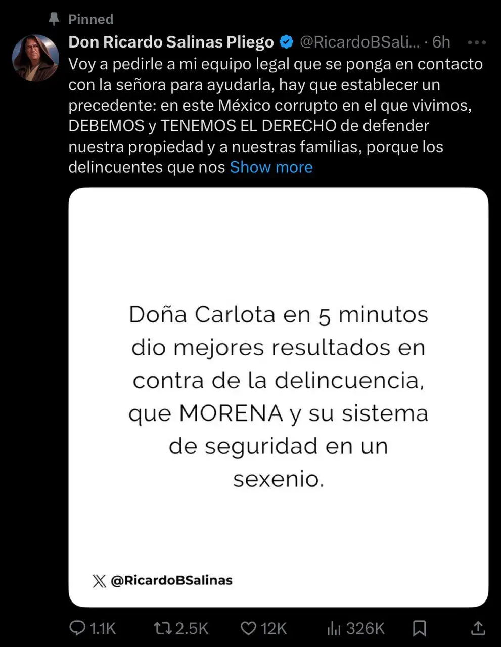 El caso ha llamado la atención a nivel nacional, luego de que el empresario Ricardo Salinas Pliego manifestara su apoyo público a doña Carlota. A través de sus redes sociales, el fundador de Grupo Salinas anunció que pondrá a su equipo legal a disposición de la mujer detenida.