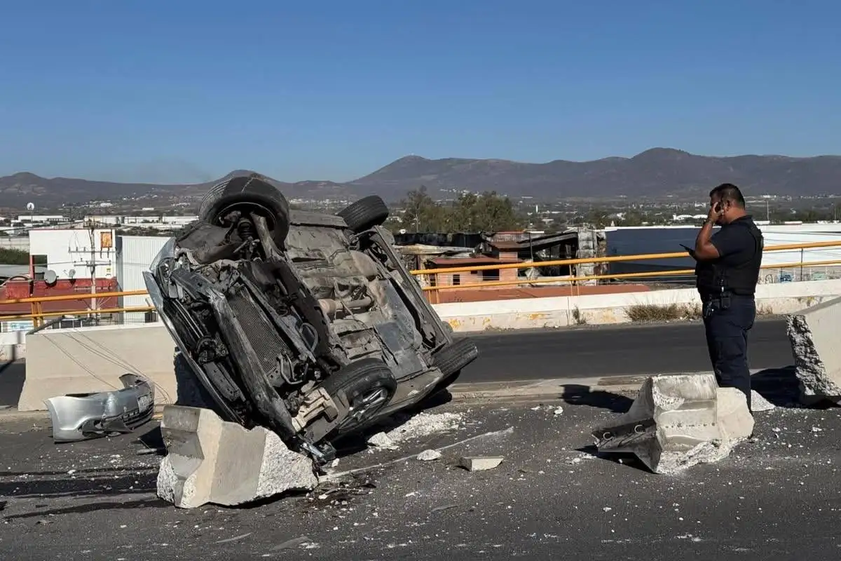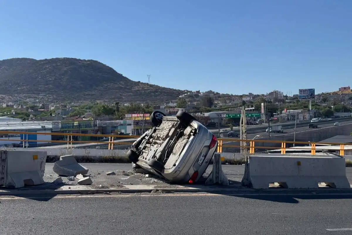 La mañana de este viernes se registró un accidente vehicular sobre el Puente Entronque Montenegro, ubicado en la entrada norte a la cabecera delegacional de Santa Rosa Jáuregui, donde un automóvil Volkswagen Jetta volcó tras impactarse contra el muro de contención. En el vehículo viajaban una mujer y dos jóvenes estudiantes.