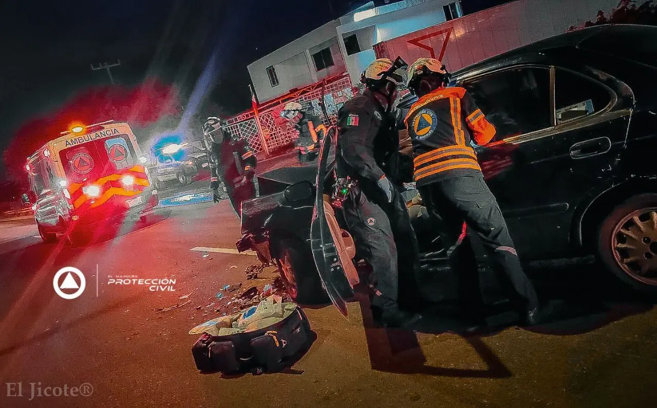 De acuerdo con el reporte de Protección Civil de El Marqués, un automóvil impactó por la parte trasera a un tractocamión, lo que ocasionó que el conductor del vehículo compacto quedara atrapado dentro de la unidad debido a que la puerta resultó severamente deformada tras el choque.