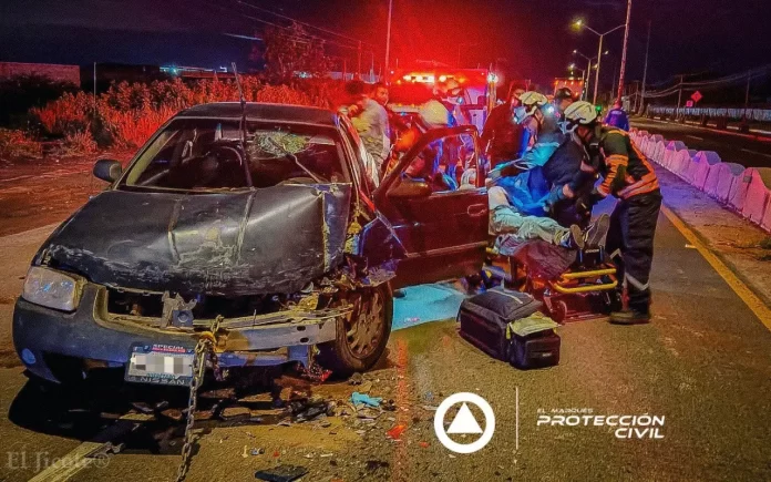 Personal de la Sección Médica Prehospitalaria acudió al lugar para valorar a los involucrados, determinando que el conductor del automóvil presentaba lesiones considerables, mientras que el chofer del tractocamión solo registró heridas leves.