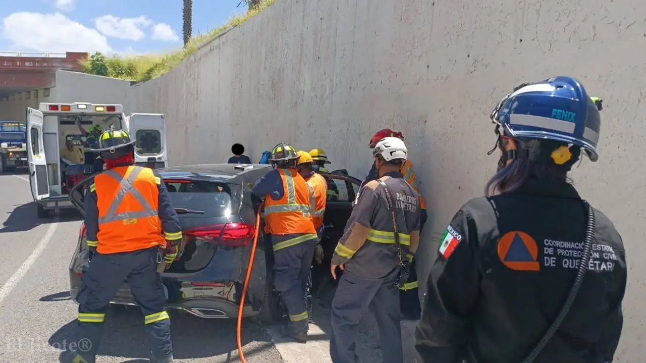La tarde de ayer domingo se registró un accidente vial en un paso a desnivel de Juriquilla, donde un vehículo impactó contra un muro de contención.