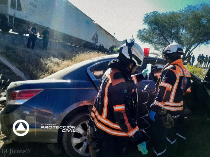 La mañana de este viernes se registró un accidente ferroviario entre un tren y un vehículo tipo sedán sobre la carretera estatal 200, a la altura de la comunidad de Guadalupe La Venta, en el municipio de El Marqués.
