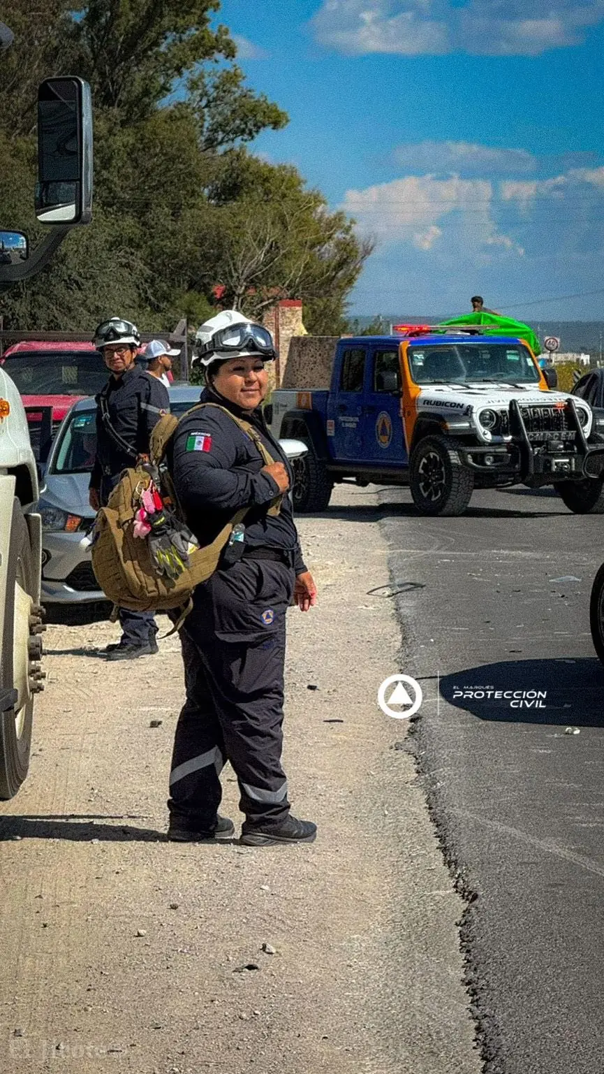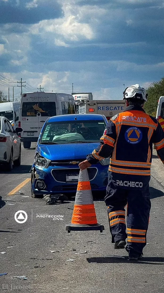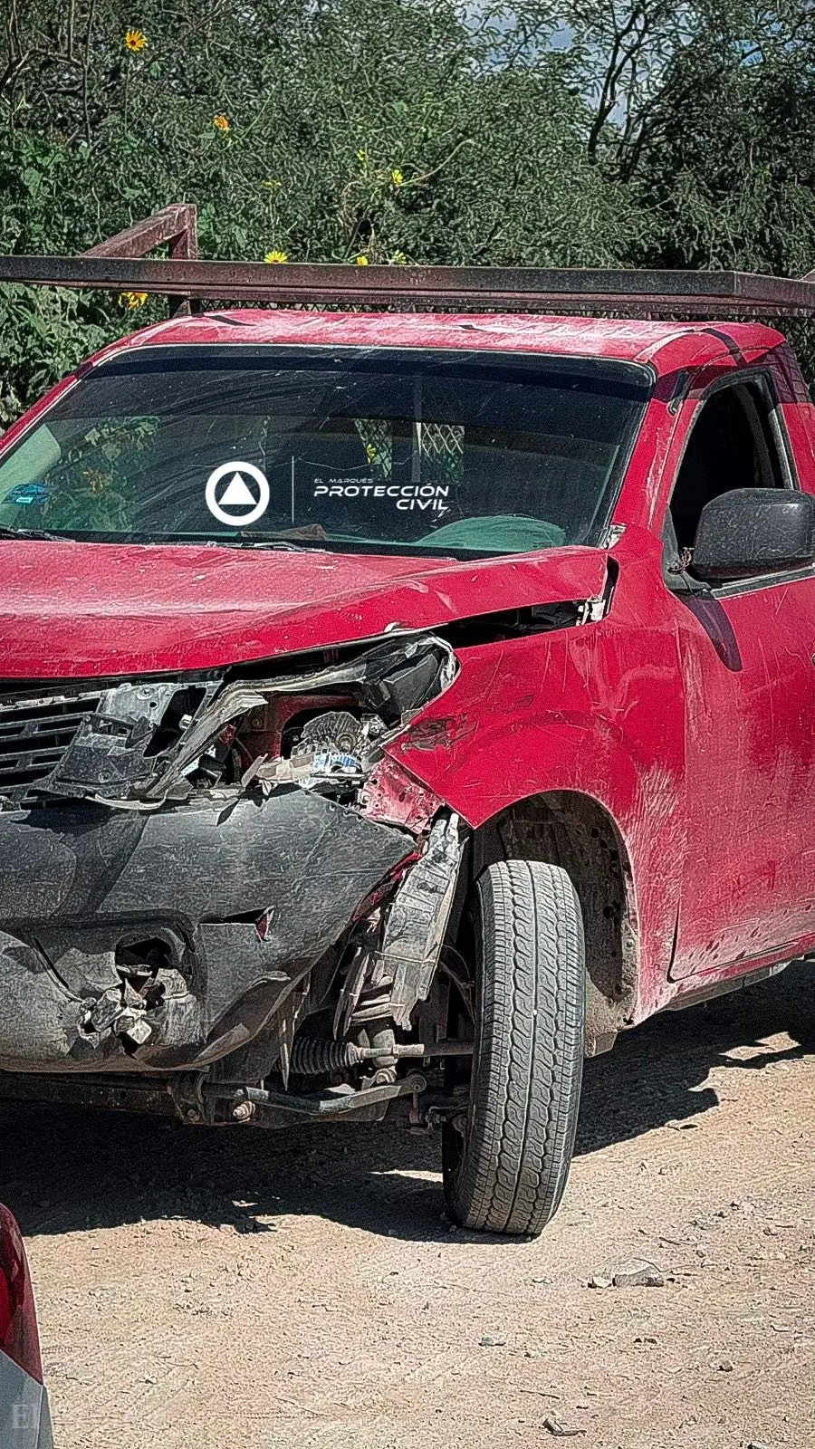 Protección Civil El Marqués reportó un accidente frontal entre una camioneta y un vehículo en la entrada a Santa Cruz, sobre la carretera estatal 500.
