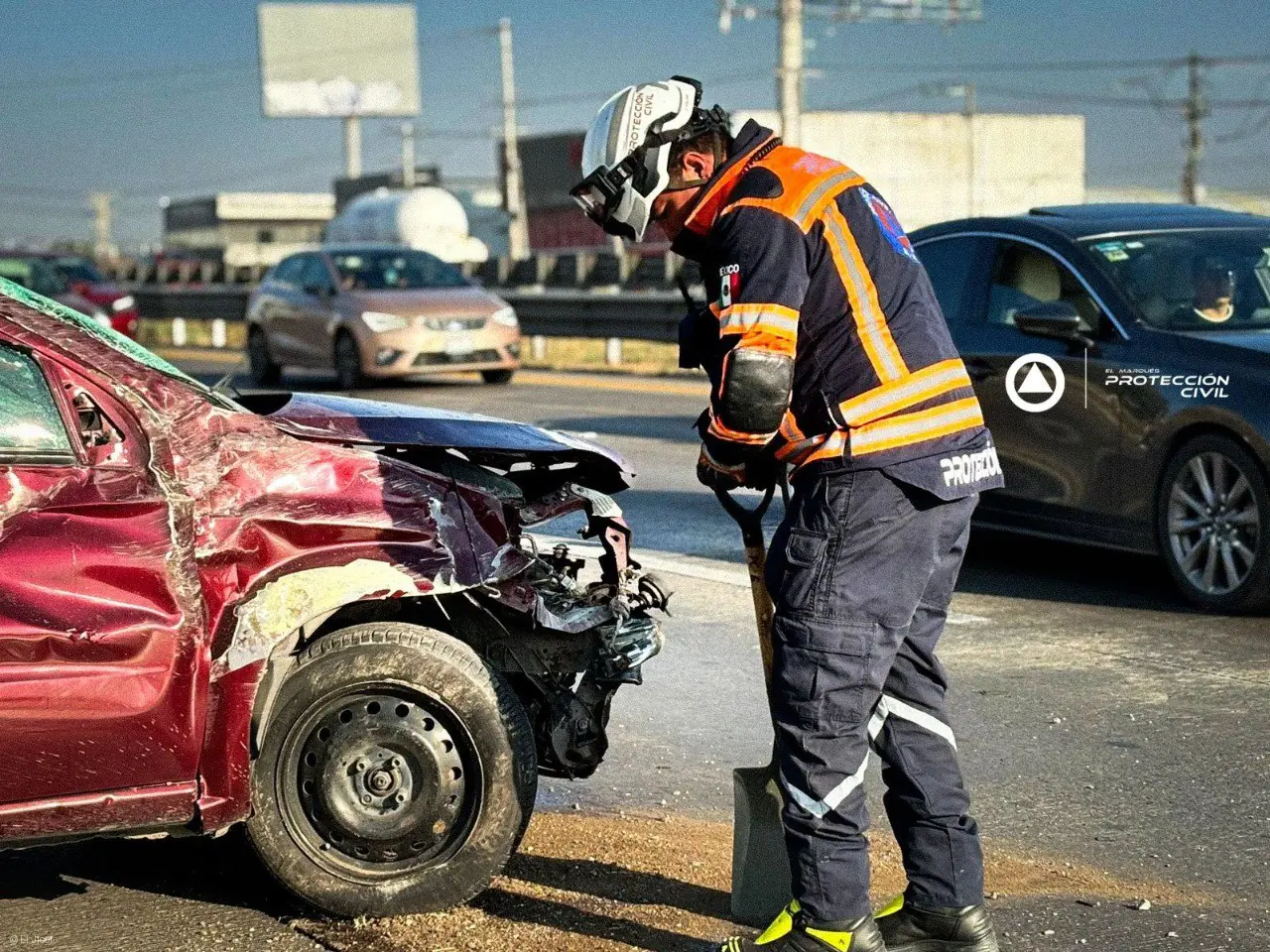 La Coordinación Municipal de Protección Civil de El Marqués atendió un accidente de vehículo motorizado ocurrido en la autopista federal 57, en dirección Querétaro-México, a la altura de la Comisión de Libros de Texto Gratuitos.