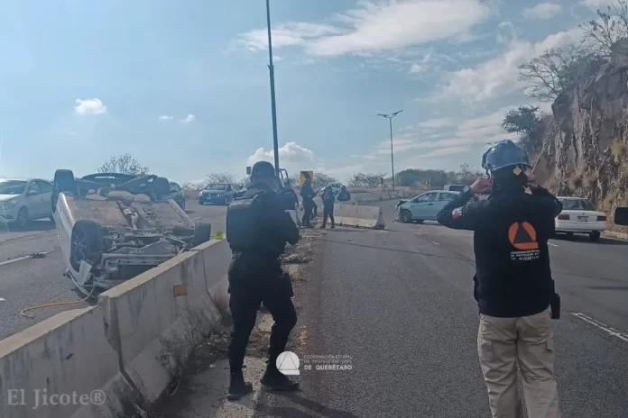 Un accidente vehicular se registró sobre el Anillo Vial Fray Junípero Serra, a la altura de Jurica Pueblo, lo que generó la movilización inmediata de los cuerpos de emergencia.