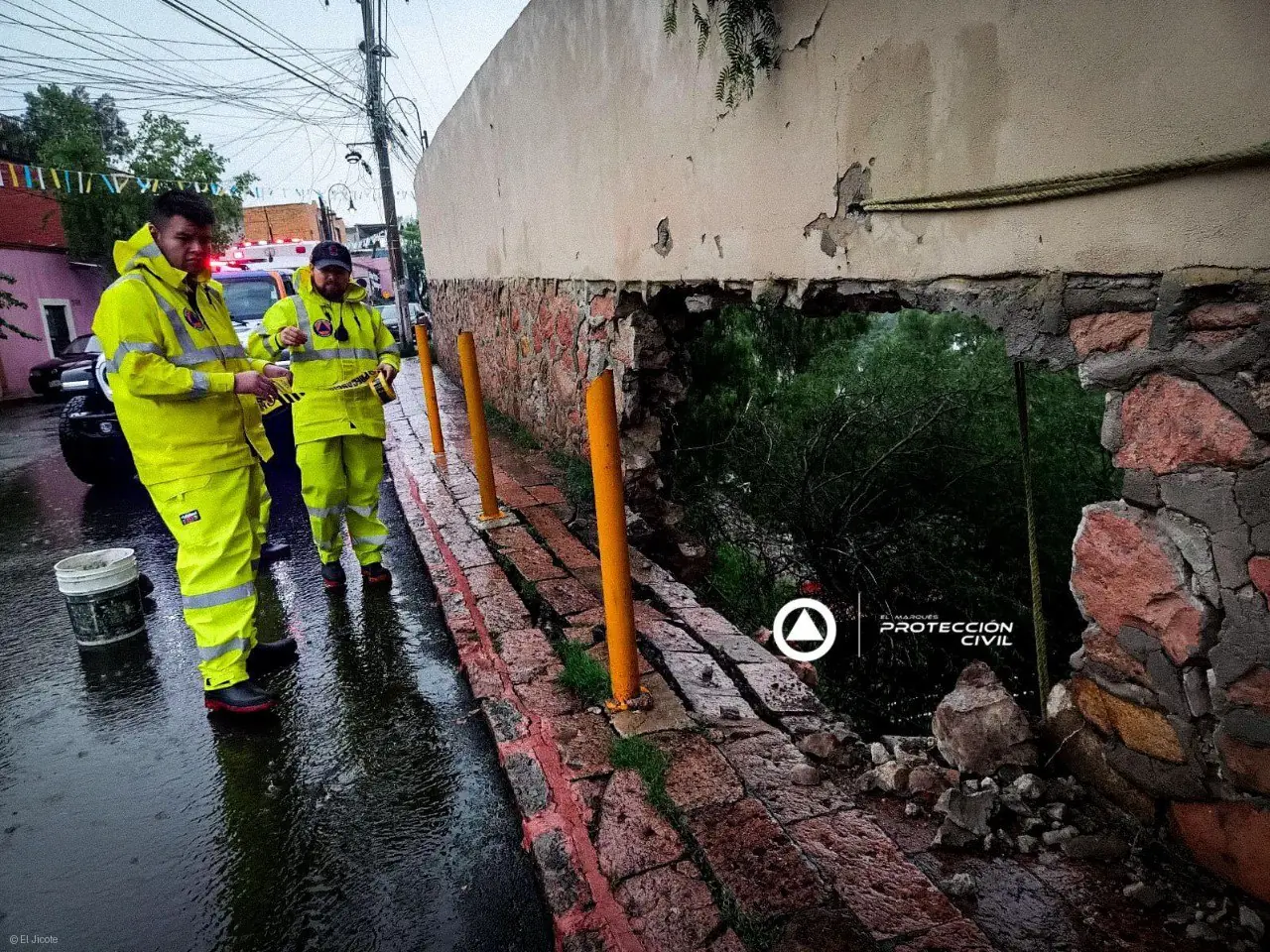Durante un recorrido preventivo en la comunidad de La Cañada, autoridades detectaron un orificio en un muro y la banqueta de una vialidad. Como medida de seguridad, se acordonó la zona para evitar el paso de peatones y vehículos.
