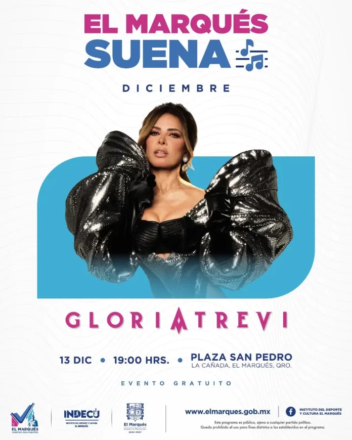 El Instituto del Deporte y Cultura El Marqués (INDECU) anunció la presentación de la cantante Gloria Trevi como parte del programa «El Marqués Suena».