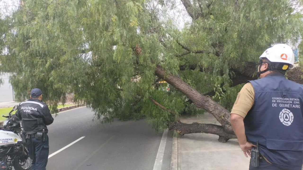La tarde de este martes se registró la caída de un árbol sobre la Calzada de Los Arcos, a la altura de la colonia Carretas, lo que provocó el cierre parcial de la vialidad en dirección al centro de la ciudad.