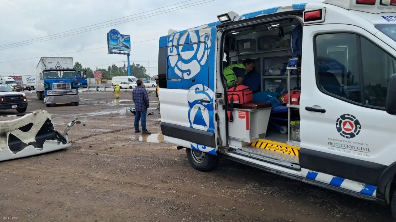 Personal de Protección Civil Municipal y Bomberos de Pedro Escobedo atiende en estos momentos un accidente entre dos unidades pesadas, ocurrido sobre la carretera 57 con dirección a Querétaro.