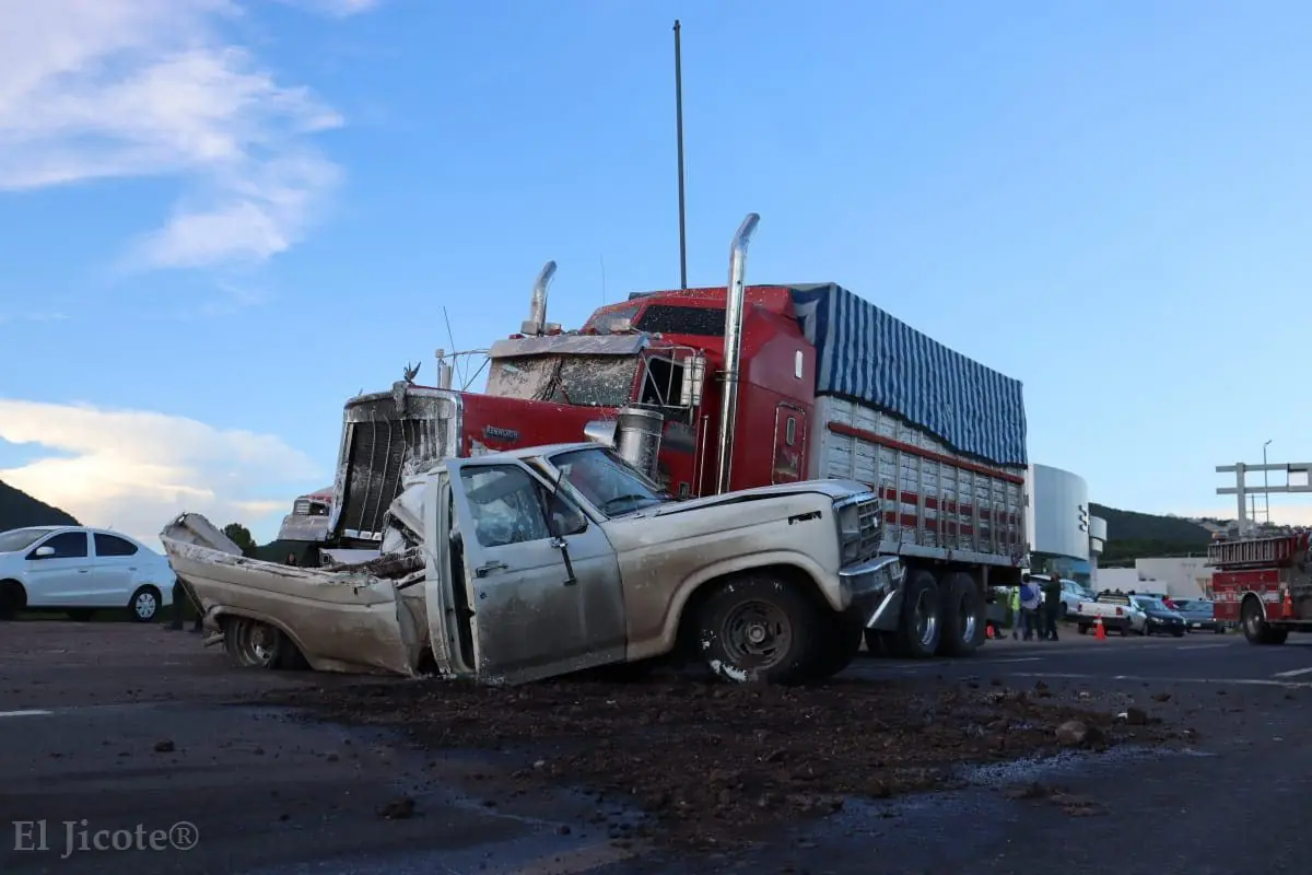 Elementos de Protección Civil y Bomberos de Querétaro acudieron al llamado de emergencia por un accidente vehicular múltiple registrado en el Anillo Vial Fray Junípero Serra, donde se vio involucrada una unidad de carga pesada que colisionó contra una camioneta tipo pick-up.
