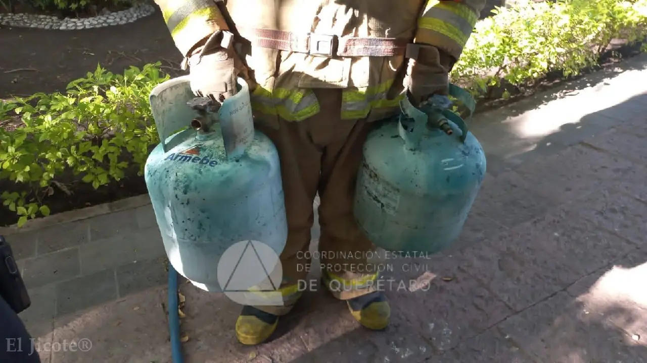 El incidente ocurrió cuando se intentaba cerrar la válvula de un cilindro de gas L.P. tras detectarse una fuga. La rápida actuación permitió activar un extintor instalado en el lugar, lo que ayudó a controlar el riesgo y evitar mayores daños.