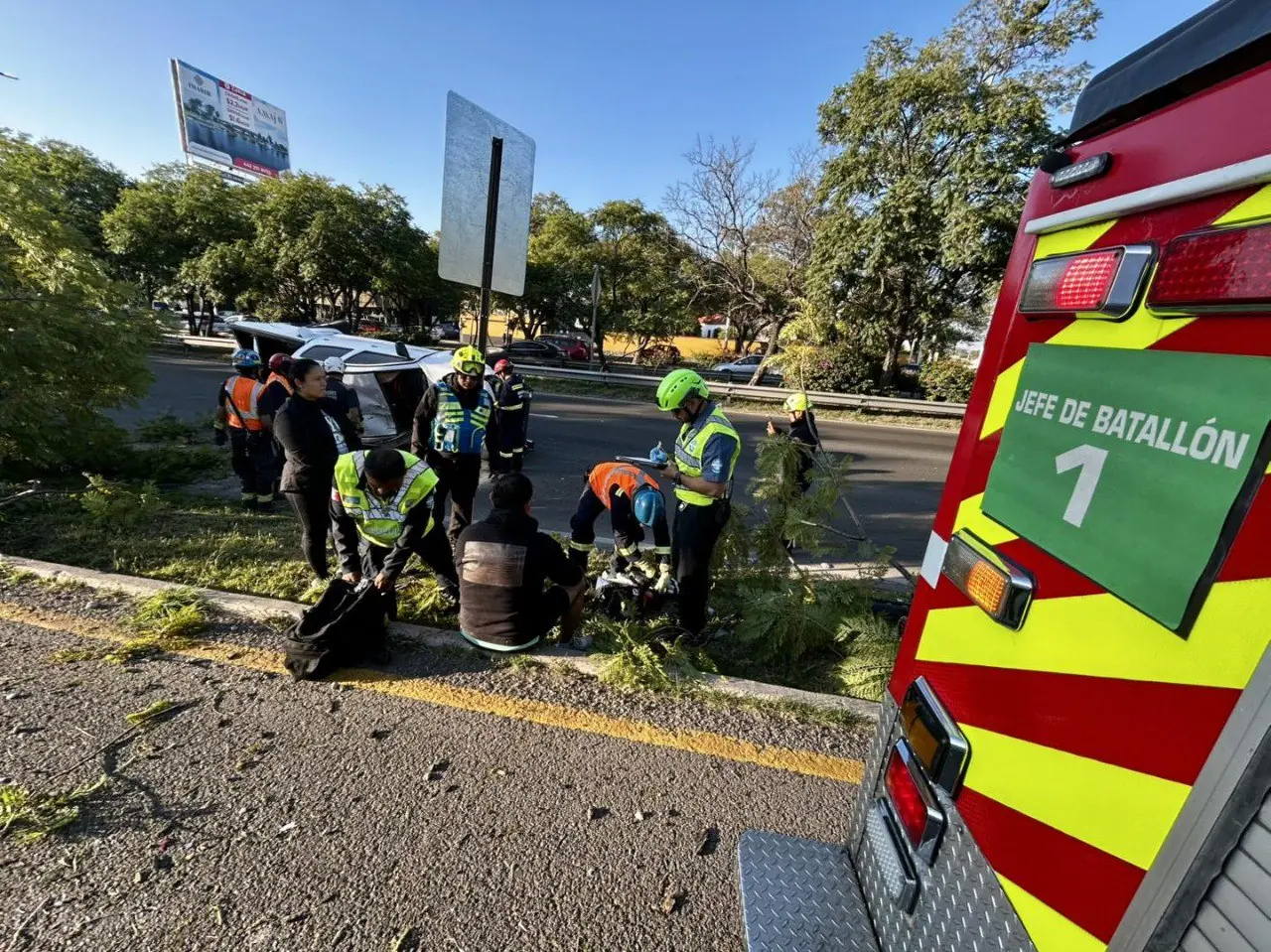 Asimismo, personal operativo realizó labores de contención de derrames y retiro de un árbol que fue derribado a causa del accidente, el cual obstruía parcialmente la vialidad.