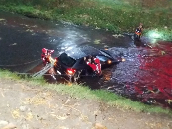 Auto cae al dren El Arenal en El Tintero; tres personas resultan ilesas