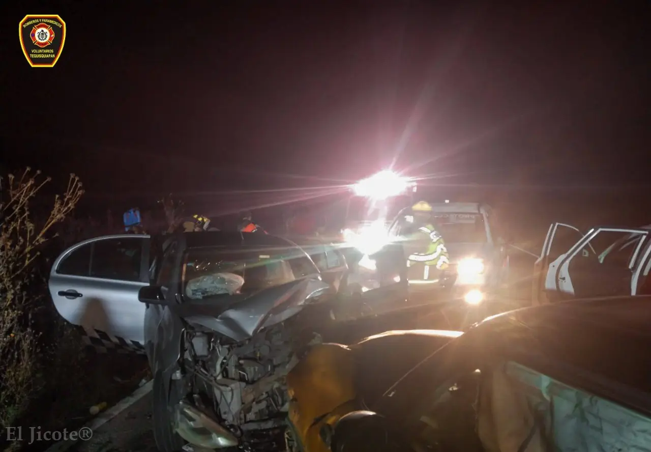 Durante la noche de ayer, Bomberos Voluntarios de Tequisquiapan atendieron un reporte de choque frontal entre dos vehículos. El incidente ocurrió en la Carretera 200, a la altura del kilómetro 36+500, en la zona de Los Cerritos.