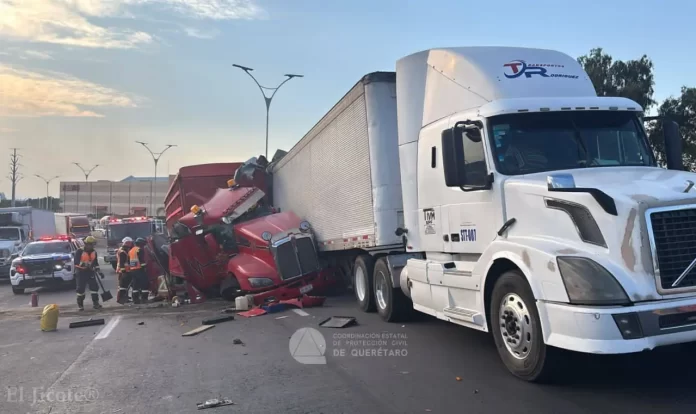 InicioQuerétaroChoque entre unidades pesadas provoca derrame de líquidos en la carretera Celaya–Querétaro