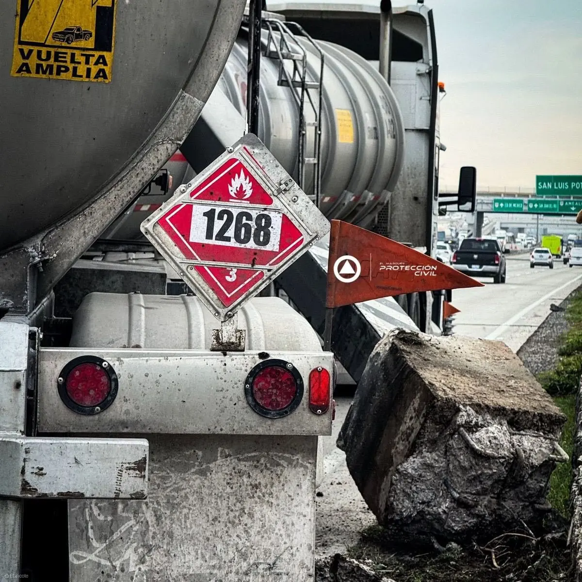 De acuerdo con los primeros reportes, la pesada unidad, dedicada al transporte de hidrocarburos, circulaba por el kilómetro 190 cuando por causas aún no determinadas colisionó con el soporte metálico ubicado en el camellón. El fuerte impacto ocasionó que la estructura se desplomara y cayera directamente sobre las cisternas del vehículo, generando una situación de riesgo y bloqueando varios carriles de circulación.