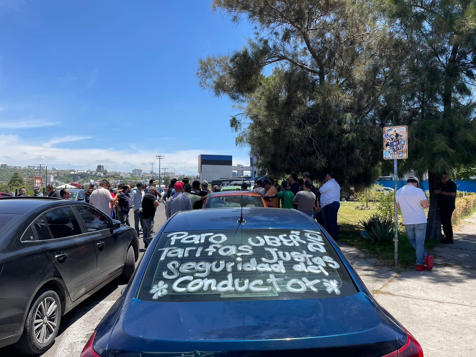 Conductores de Uber y DiDi se congregaron frente al estadio Corregidora para protestar contra las bajas tarifas y la creciente inseguridad. Denuncian que las plataformas solo pagan $4 por kilómetro recorrido y retienen entre 35% y 50% de sus ingresos.