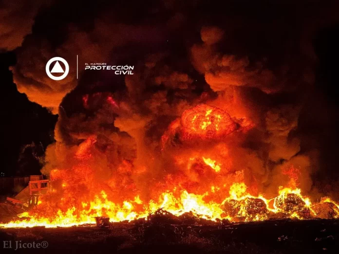 Durante la noche, personal de la Coordinación de Protección Civil de El Marqués atendió el reporte de un incendio en un predio baldío ubicado en la comunidad de Chichimequillas, donde se registraba la acumulación de madera, plásticos y basura.
