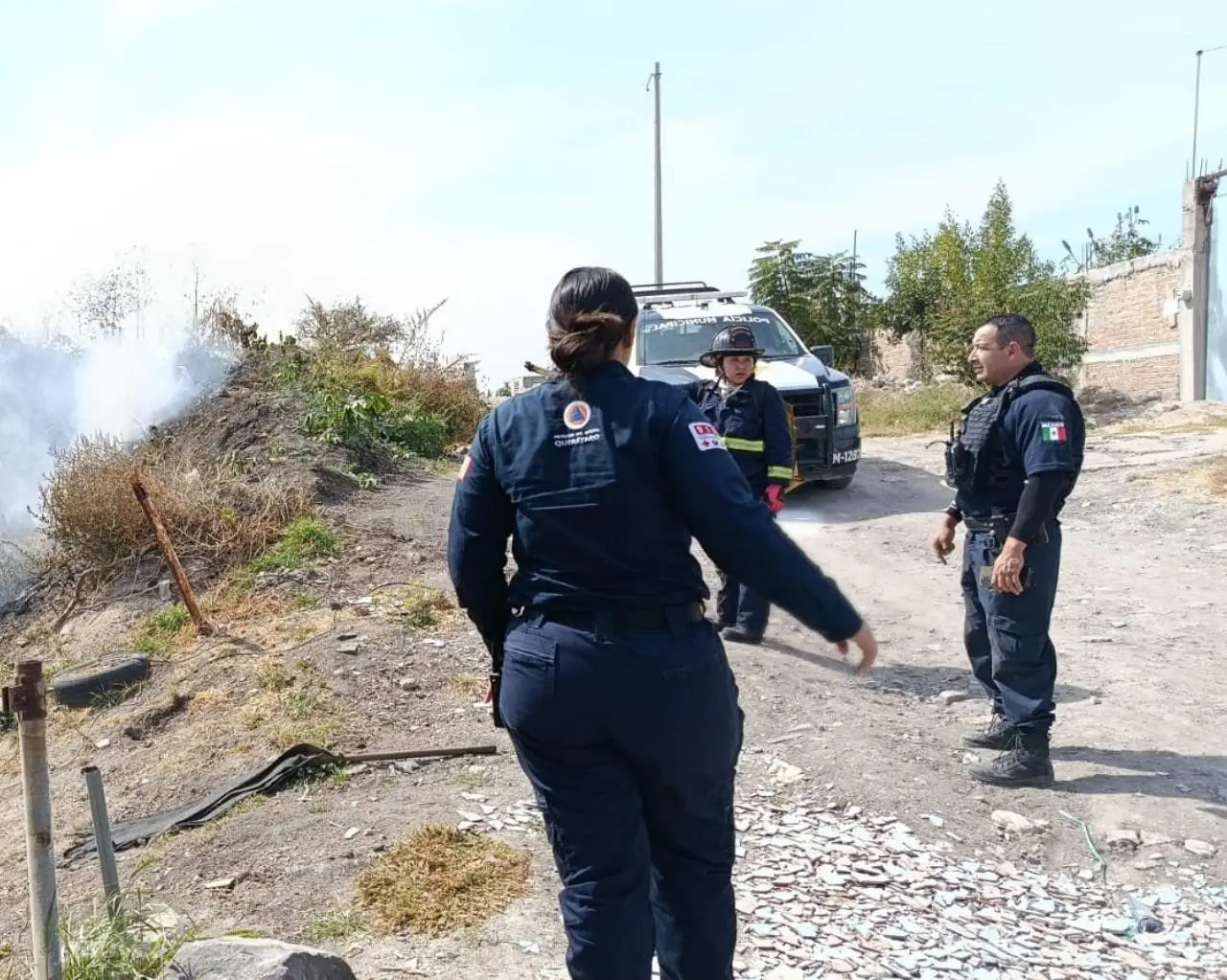 Elementos de Protección Civil Municipal de Querétaro, en coordinación con el Cuerpo de Bomberos, atendieron oportunamente un incendio registrado en un terreno baldío ubicado en la colonia San Pedro Mártir.