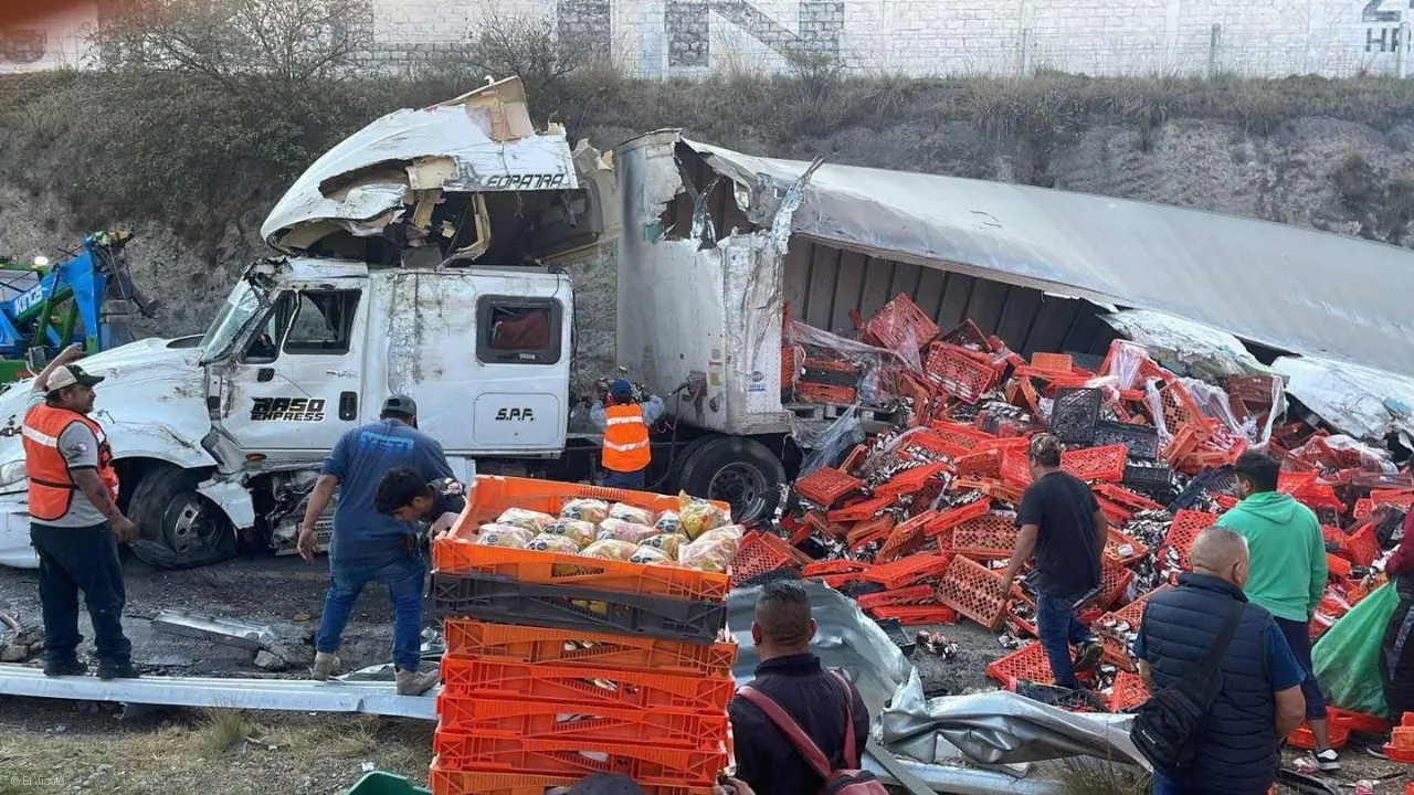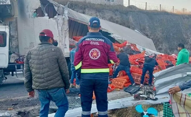 La mañana de este viernes se registró un aparatoso accidente en la peligrosa curva del puente de San Bernabé, sobre la autopista Toluca – Atlacomulco. Un tráiler cargado con cajas de galletas volcó tras perder el control, presuntamente por exceso de velocidad al tomar la curva, provocando el cierre parcial de la vía y un fuerte caos vial.