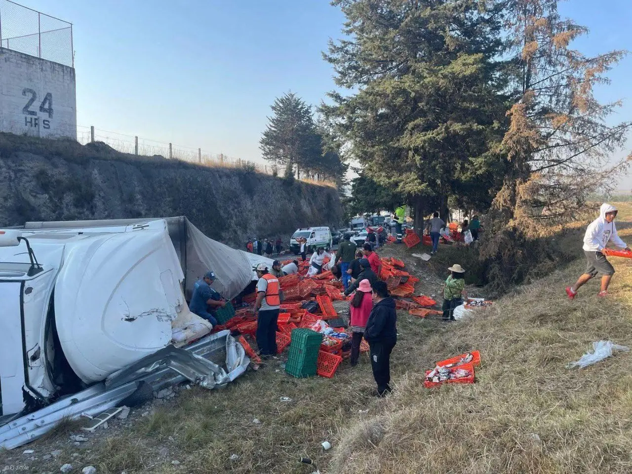 InicioNacional¡Depredadores de accidentes! Tráiler con galletas vuelca en San Bernabé y desatan...