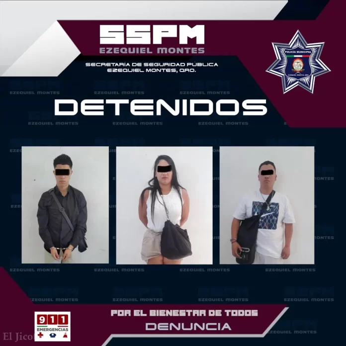 Los detenidos fueron identificados como Armando Raúl “N”, de 19 años; José Manuel “N”, de 27 años; y Laura Faviola “N”, de 30 años, todos originarios del estado de Querétaro.