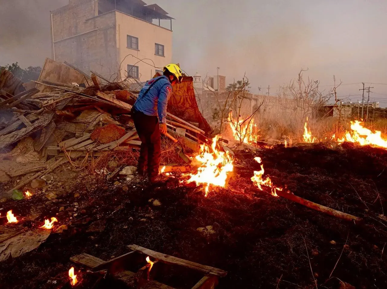 El incidente se registró en un predio baldío donde ardía vegetación y madera. De inmediato, se iniciaron labores de control y extinción del fuego, priorizando la seguridad de los habitantes y la protección del entorno.