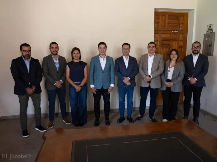 El presidente municipal de El Marqués, Rodrigo Monsalvo Castelán, acompañado por el secretario del Ayuntamiento, Rodrigo Mesa Jiménez, sostuvo una reunión con representantes de la Dirección Regional de la Cadena Comercial OXXO en Querétaro, con el propósito de generar esquemas de colaboración que impulsen tanto el desarrollo social como la recaudación municipal.