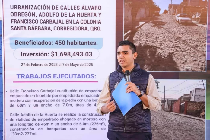 El Gobierno Municipal de Corregidora inauguró las obras de urbanización de las calles Adolfo de la Huerta, Francisco Carbajal y Adolfo Ruiz Cortines en la colonia Santa Bárbara, con una inversión total de 2.3 millones de pesos que beneficia directamente a más de 450 habitantes de la zona.