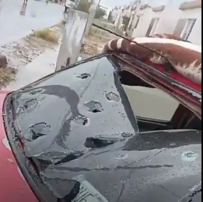 En uno de los videos difundidos se observa cómo un automóvil resultó severamente dañado por los impactos: el parabrisas trasero quedó con visibles perforaciones, mientras que uno de los retrovisores terminó completamente destruido.
