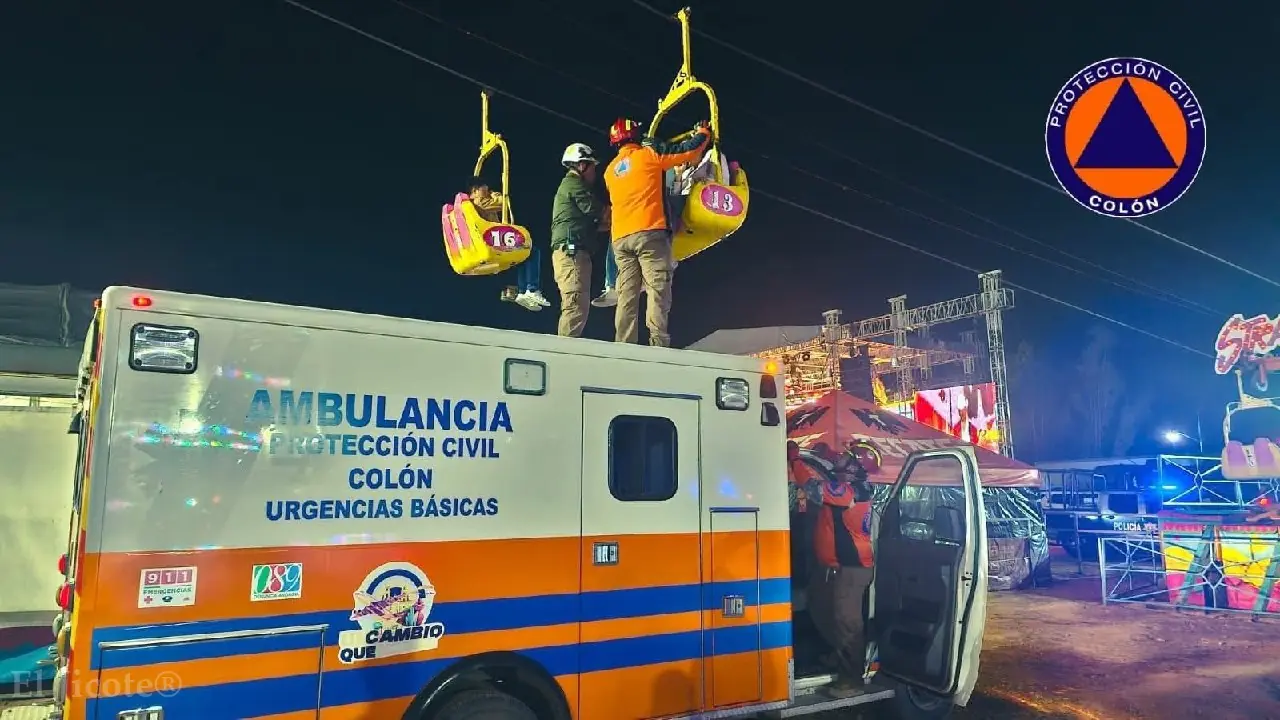 La Coordinación Municipal de Protección Civil de Colón informó que se realizó una evacuación exitosa de ocho personas que quedaron a bordo del juego mecánico “Teleférico”, luego de que presentara una falla mecánica que detuvo su operación.