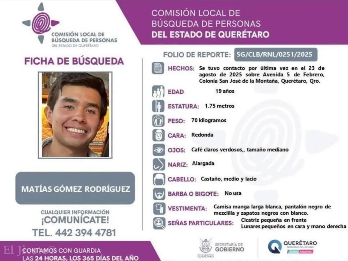 Luego de más de dos días de búsqueda y una intensa movilización por parte de familiares, amigos y personas solidarias, este lunes se confirmó el hallazgo sin vida de Matías Gómez, joven que había sido reportado como desaparecido en Querétaro desde la madrugada del pasado viernes.