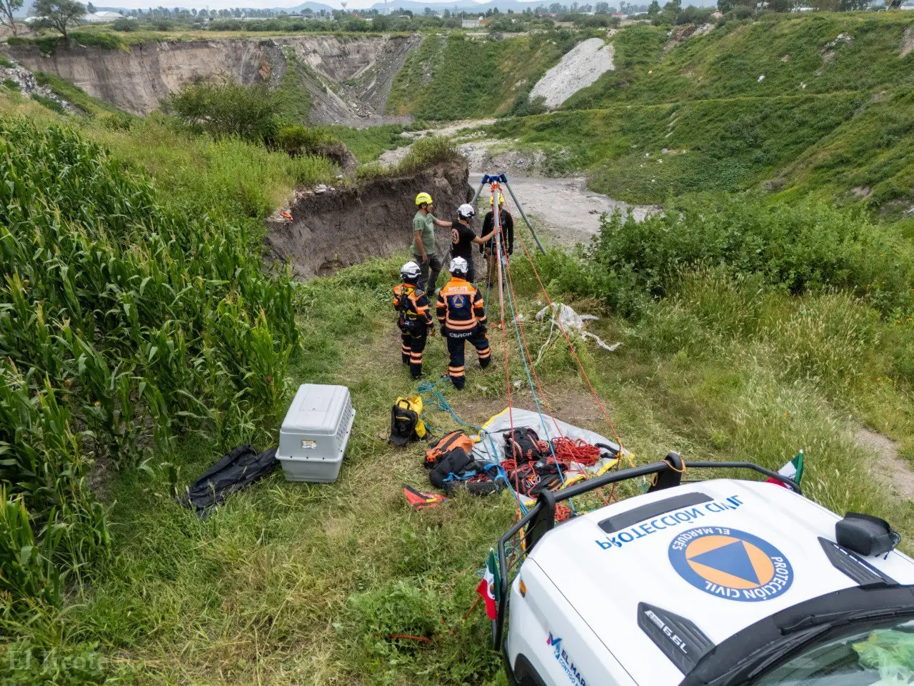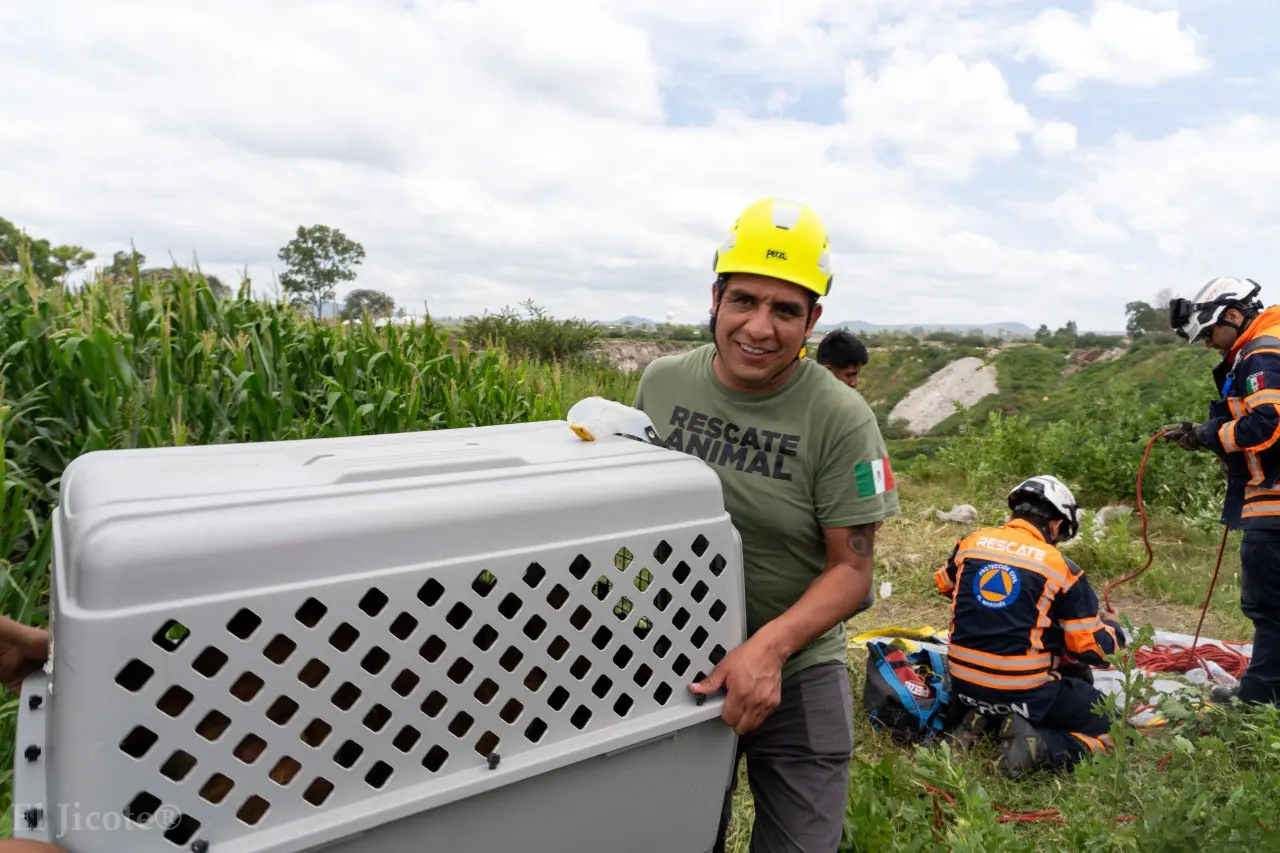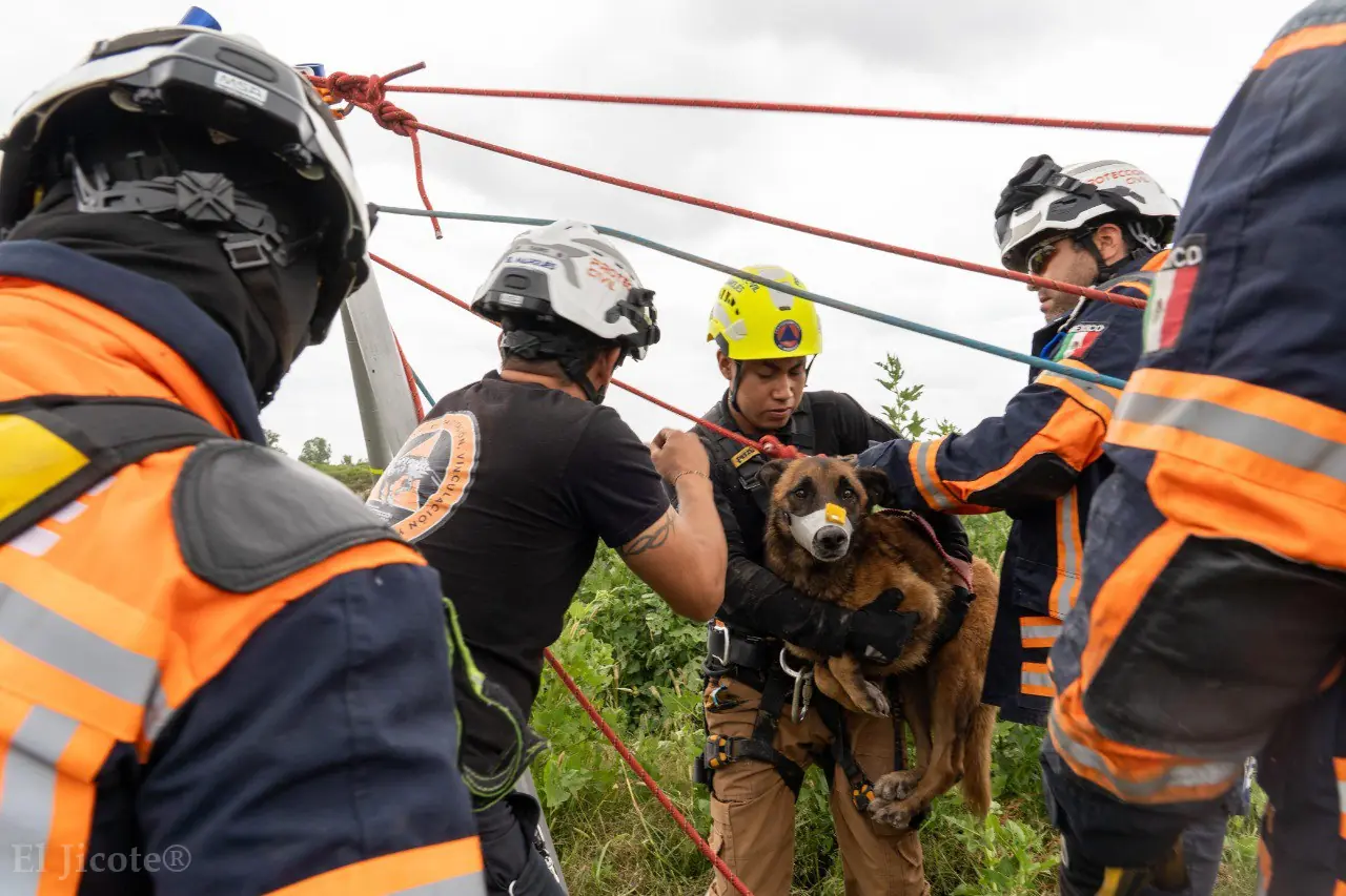 El reporte fue realizado a la línea 911, lo que permitió que seis elementos de Protección Civil y cuatro integrantes del IMPA acudieran con unidades especializadas y equipo de rescate. El canino, que se encontraba en riesgo de caer más de 20 metros al vacío, fue salvado mediante una maniobra de tripié y sistema de ventaja mecánica.