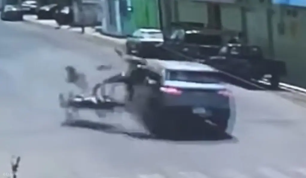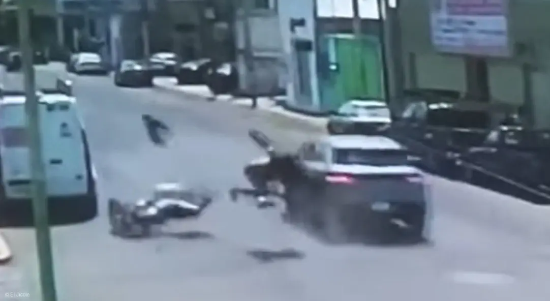 El momento exacto del choque fue captado por una cámara de videovigilancia ubicada en la zona, donde se observa la fuerza del impacto y el derrape del motociclista tras la colisión.