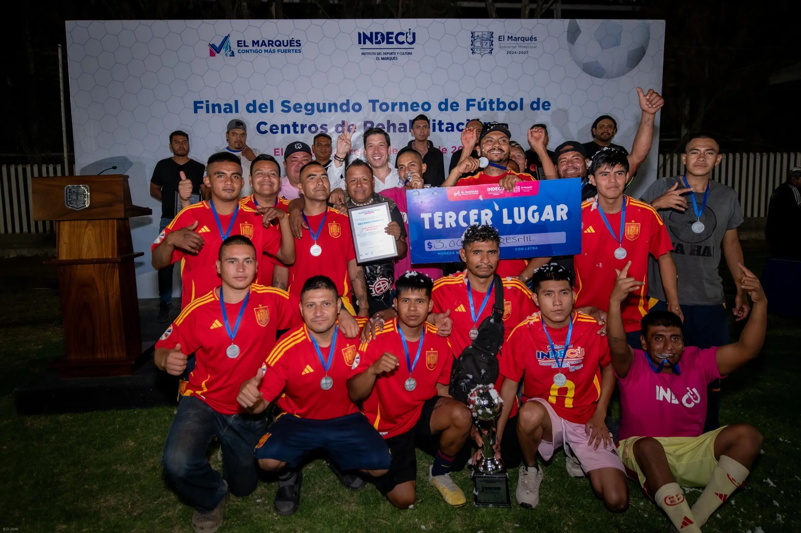 Como parte de su compromiso con la reconstrucción del tejido social y el fortalecimiento de entornos saludables, el presidente municipal de El Marqués, Rodrigo Monsalvo Castelán, encabezó la entrega de material deportivo a 72 academias municipales, beneficiando a 2,758 alumnos. La acción se realizó en el marco de la clausura del Segundo Torneo Municipal de Futbol 7 con Centros de Rehabilitación, consolidando una estrategia integral que apuesta por el deporte como herramienta de transformación social.