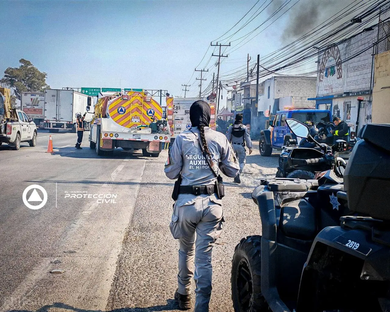 Personal de Protección Civil El Marqués acudió de inmediato al reporte y encontró el fuego avanzando hacia el establecimiento, por lo que la sección de Rescate implementó maniobras de control para evitar que las llamas se extendieran a otras áreas.