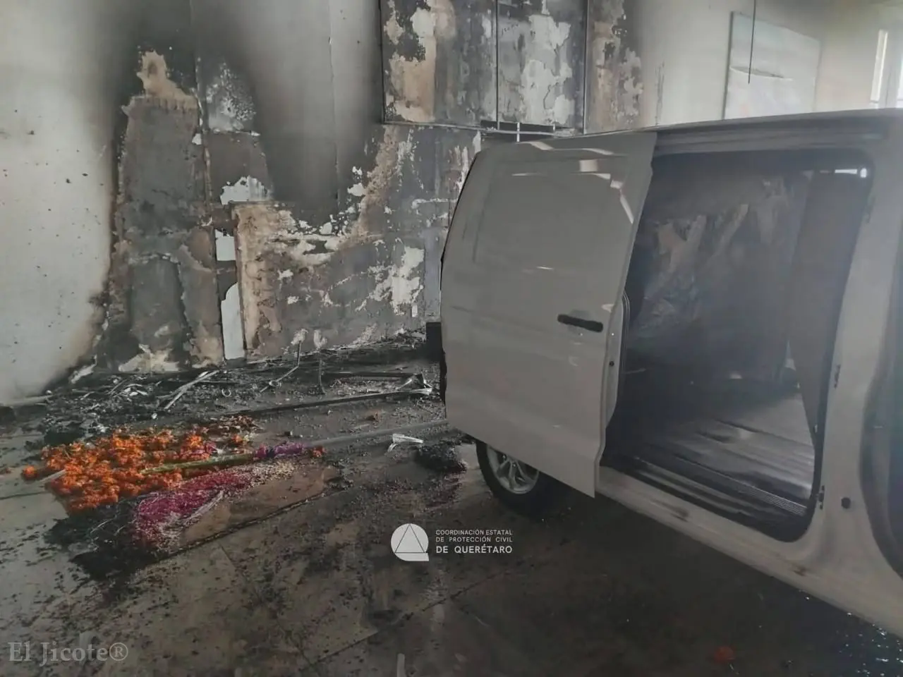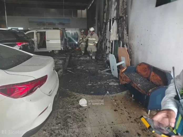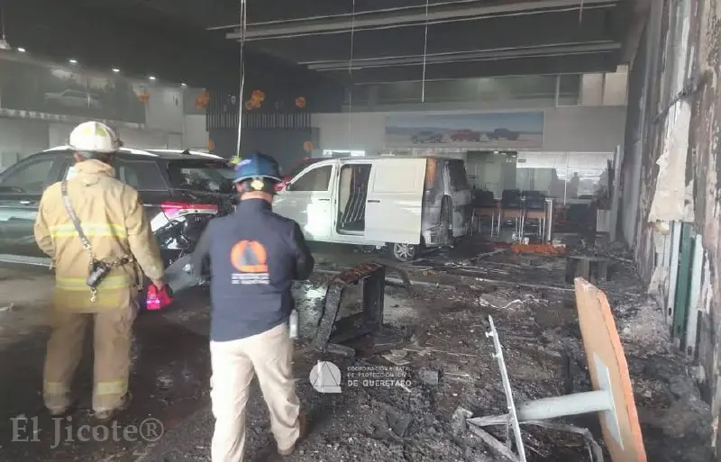 Elementos del Cuerpo de Bomberos de Querétaro acudieron al lugar para sofocar las llamas y realizar labores de ventilación, debido a la gran concentración de humo al interior del inmueble. Durante la inspección, se constataron daños en muros —sin riesgo estructural— y afectación parcial a tres vehículos que se encontraban dentro de las instalaciones.