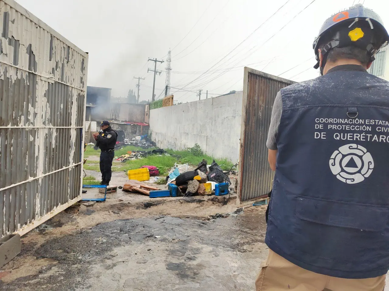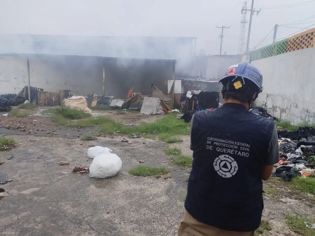 Elementos de la Coordinación Estatal de Protección Civil de Querétaro acudieron recientemente a la colonia Las Américas, tras recibirse el reporte de un incendio en un predio que funcionaba como bodega de almacenamiento de materiales plásticos.