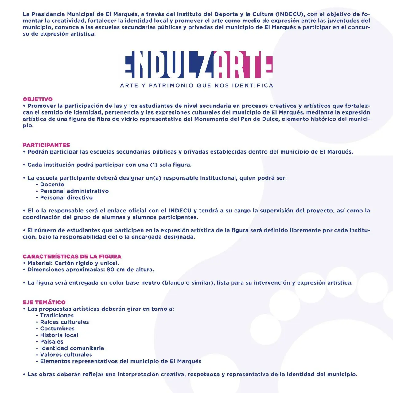 El Instituto del Deporte y Cultura de El Marqués lanzó la convocatoria dirigida a secundarias públicas y privadas del municipio para participar en Endulzarte, un concurso de expresión artística enfocado en fomentar la creatividad y el trabajo en equipo entre estudiantes.