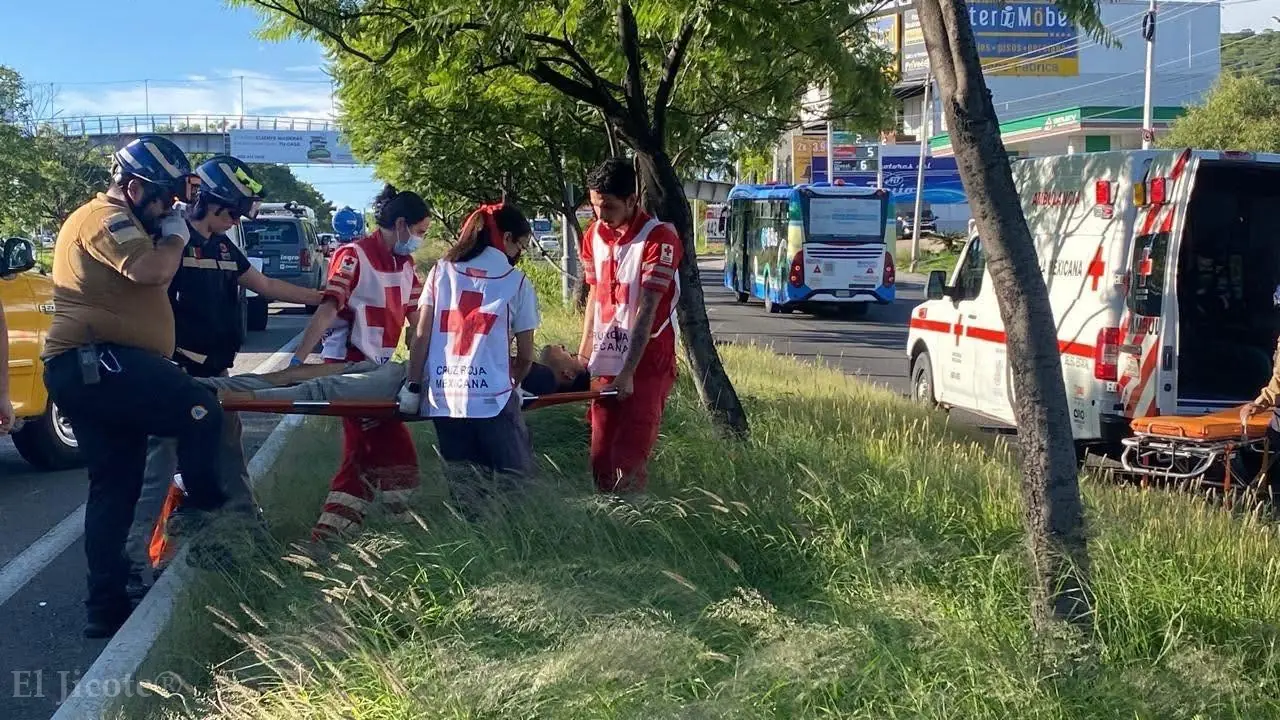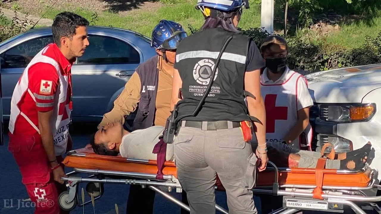 La tarde del martes, personal de la Cruz Roja Querétaro brindó atención prehospitalaria a un joven motociclista que resultó lesionado tras un hecho de tránsito ocurrido en los carriles centrales de Paseo de la República.