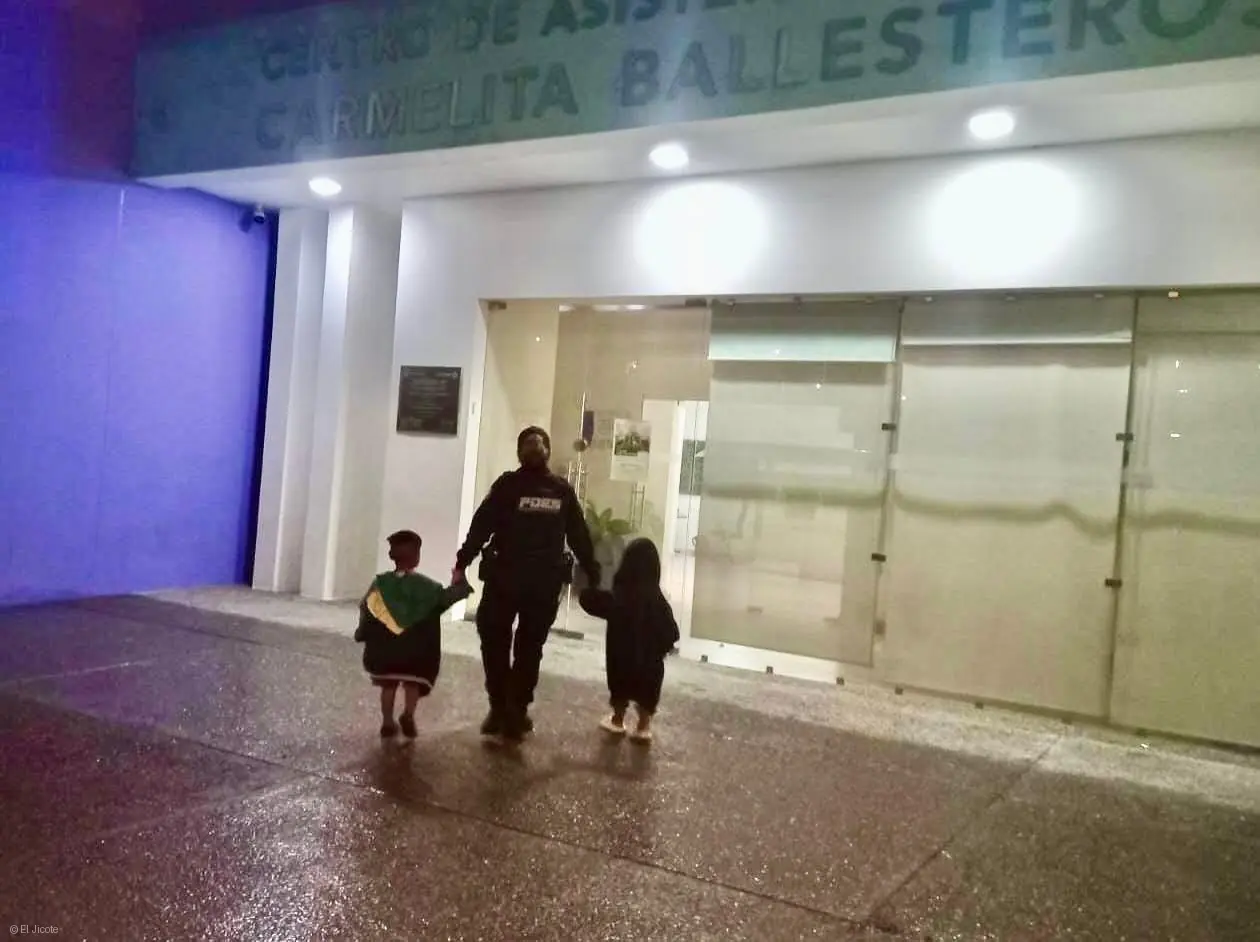 Al arribar al sitio, los oficiales encontraron a una mujer adulta junto a dos niños, de aproximadamente 4 y 5 años de edad. Durante la entrevista con la mujer, ésta afirmó ser la madre de los menores; sin embargo, el personal policial pudo constatar que los niños presentaban signos evidentes de descuido y se encontraban en una condición de riesgo.